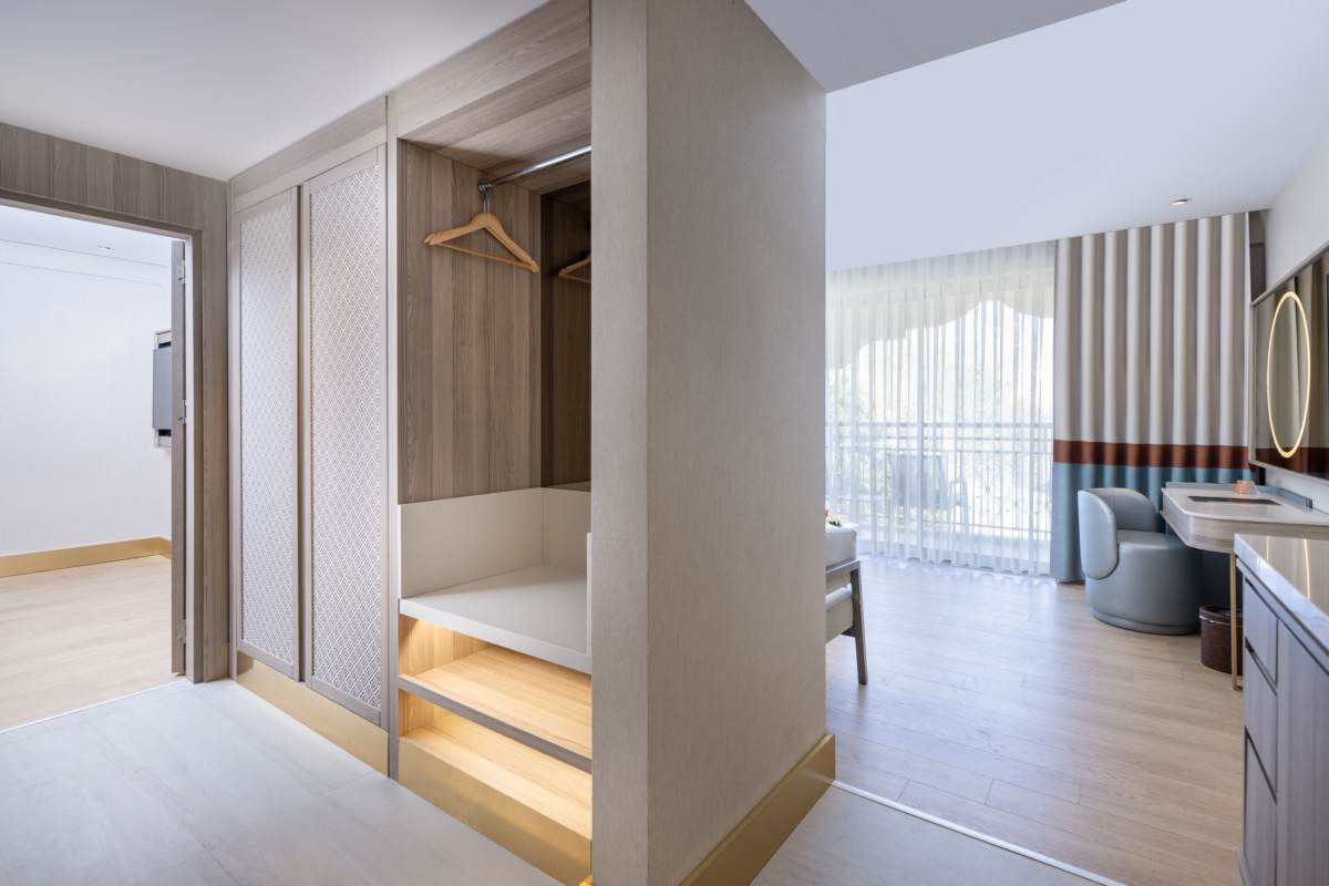 The Garden View Family Suite; there are 4 of them. It is 60m² in width, consisting of 2 bedrooms. There is 1 double bed and 2 single beds. There is a Jacuzzi on the terrace. Suitable for a maximum of 4 adults +1 baby stay.